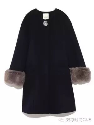 珠饰十分夺目,袖口的皮毛增添了女性风格。王道可爱的A字外套♡