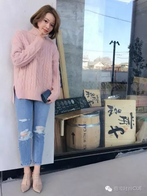 入手毛衣,再搭配直筒牛仔裤,不会目的性太明显又能衬托自然肤色。