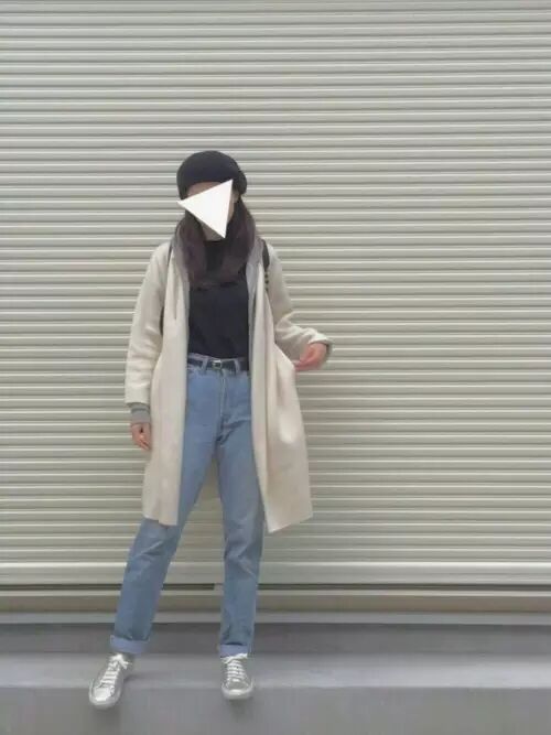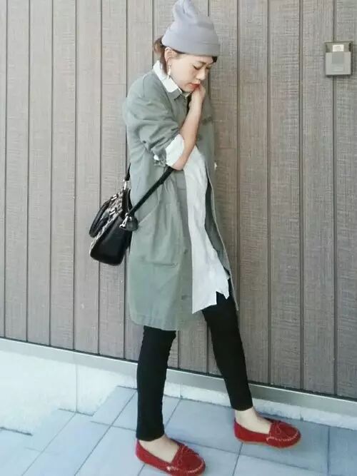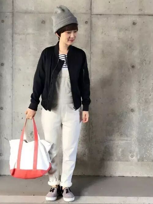 鞋子的白色与灰色和黑色,加上毛线帽,让配色得到平衡,搭配十分出彩。