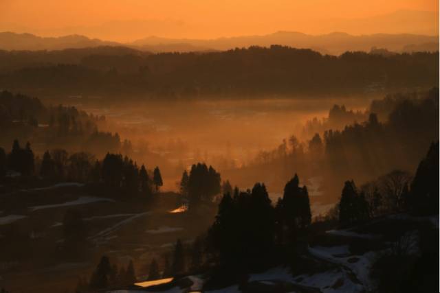 春季(6月)、秋(10月、11月)是被残雪和稻田之水层层包围的「水鏡」时期。